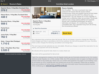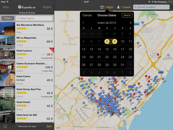 Tous les hôtels référencés par Expedia Hotels & Flights contiennent une fiche descriptive illustrée. Vous pouvez vous faire une idée d'un hôtel en un clin d’œil en regardant les photos, les services de l'établissement et en lisant les avis des utilisateurs. La partie sur la réservation de vols est quant à elle bien plus dépouillée (voire même indisponible sur iPad).